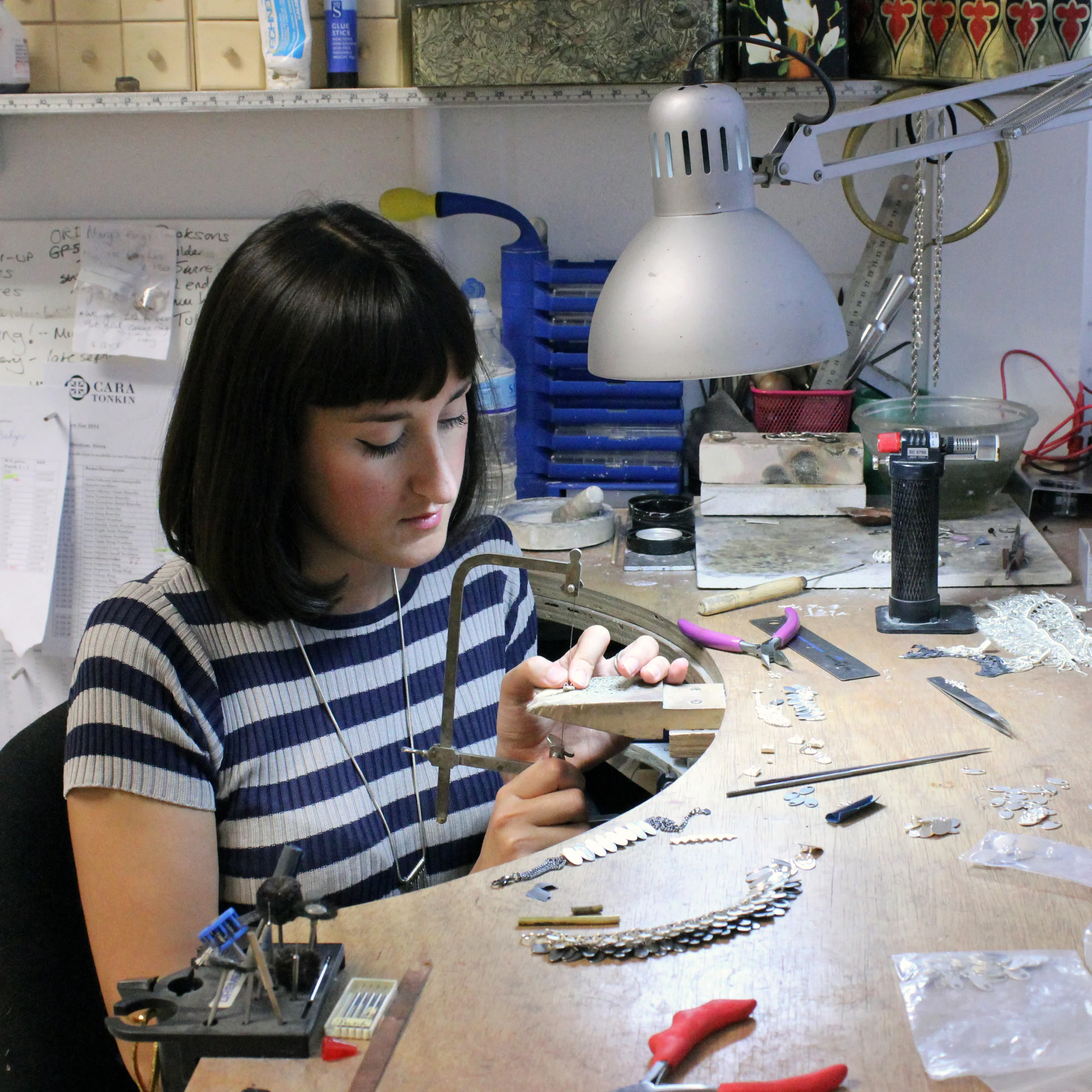 The daughter of two artists, Cara grew up surrounded by creativity both at home and in the inspiring city of Brighton. After training at world-famous art school Central St Martins and achieving a First Class Honours degree in jewellery design, she returned to Brighton to establish her studio where every piece in her collections is made.